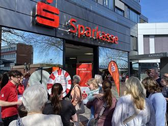 großer Andrang herrschte beim Tag der offenen Tür der Sparkasse auf dem Rathausplatz.