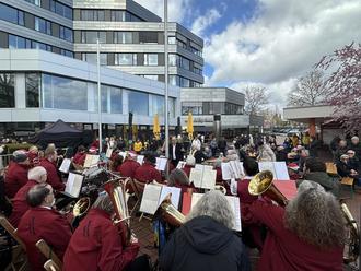 Die "Flotten Töne" aus Fürstenwald sorgten trotz Regen gemeinsam mit dem Osterhasen für gute Stimmung.