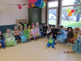 Am Rosenmontag war es mal wieder soweit. Alle Kinder kamen verkleidet in die Kita. Zuerst trafen sich alle Verkleideten im Bewegungsraum zur offiziellen Begrüßung. Nach dem Motto: „1,2,3 - im Sauseschritt“ stellten alle Kinder ihre Kostüme vor. Getanzt wurde außerdem zu „Laurentia“. Zum Frühstück gab es ein leckeres Buffet, an dem sich alle nach Herzenslust bedienen konnten.
