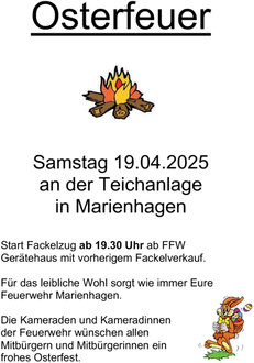 Die Kameraden und Kameradinnen der Feuerwehr wünschen allen Mitbürgern und Mitbürgerinnen ein frohes Osterfest.