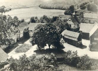 Blick ins alte Asel, aus Richtung Kirschfelsen, linksseitig der Ortslage wurde das Feuer früher aufgeschichtet.