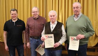Emotional viel wichtiger war dann gegen Ende der Punkt "Ehrungen" bei dem der Vorsitzende langjährige Mitglieder ehren durfte. Werner Hamel, der viele Jahre selbst Vorsitzender war, wurde für 40 Jahre Mitgliedschaft geehrt. Außerdem ernannte der Vorstand Dieter Hamel und und Edmund Ohrlich zu Ehrenmitgliedern und danke allen für ihre Treue.
