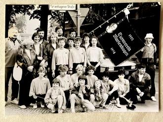Sahen wir in der Ausgabe Nr. 19 der Bürgerzeitung „Blick in unsere Großgemeinde“ eine Gruppe von Jungs, die zusammen mit Volksschullehrer Karl Weisheit im örtlichen Schulgarten lernten, können wir uns in dieser Ausgabe über die ausgesprochen fröhliche, muntere, etwas größere Schar junger Mädchen und Jungen des Volksschule Marienhagen erfreuen. Alle dreißig Schulkinder sind prima ausgestattet mit Proviant, Karl-Heinz Bauch (pendelt „heute“ zusammen mit seiner Frau zwischen Mexiko und Marienhagen) hat sogar ein Fernglas mitgenommen. Schade, dass Lehrer Weisheit nicht auf dem Bild entdeckt werden kann. Aber so ist`s ja meistens mit den Fotografen...