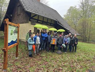 Trotz Dauerregen ließen sich die Jugendlichen ihre gute Stimmung nicht nehmen, als sie gemeinsam eine neu gestaltete Informationstafel neben der Bathilidishütte enthüllten, die sowohl die Geschichte der einstigen Jagdhütte als auch den Ursprung des Bathildisheims erklärt. „Der Wald freut sich“, hieß es mit einem Augenzwinkern von Seiten der Ranger mit Blick auf die Wetterlage.