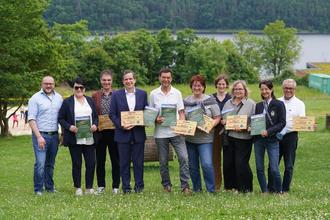 Zertifizierung_Nationalpark-_Naturpark-Partner Zertifizierung: Die Verantwortlichen der sechs neuen Partnerbetriebe freuten sich am Dienstag an der Jugendherberge Waldeck über die Auszeichnung zu Nationalpark- und Naturpark-Partnern. Bildautor: Nationalpark Kellerwald-Edersee