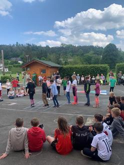 Beim abschließenden Schulsportfest konnten die Kinder ihre Ergebnisse präsentieren. Es wurden zahlreiche Vorführungen und Mitmachstationen angeboten. Die enge Zusammenarbeit aller an der Schule Beteiligten trug maßgeblich zum Erfolg des Abschlussfestes bei. Ein besonderer Dank gilt den Eltern, die das Fest mit Kuchenspenden und der Betreuung von Ständen unterstützten.