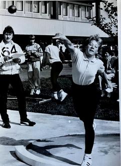 Zu den führenden Vereinen im Turngau Waldeck sowie im Leichtathletikkreis Waldeck gehörte der TV Marienhagen in der Vereinshistorie immer wieder, im Kinderturnbereich trifft es auch aktuell wieder prima zu. Dies belegen Erfolge im Turngau oder etwa kürzlich beim Deutschen Turnfest in Leipzig (2025). Ganz viele Jahre lang konnten die Leichtathleten über alle Jahrgänge hinweg stets so viele Punkte bei Wettkämpfen sammeln, dass vordere Platzierungen in den „Kreisbestenlisten für Vereine“ üblich waren. Allerdings noch erfolgreicher waren häufig die Athleten des SV Herzhausen, die jedoch lange Zeit in der LG Conti Waldeck zusammen mit weiteren Vereinen eine Startgemeinschaft bildeten. Unser hfk-Foto entstand 1987 während des zweitägigen Gaukinderturnfestes in Goddelsheim mit über 540 Sportlern. Nicole Friedrich, Teil unserer großen Leichtathletik-Mannschaft im TVM, startete in Goddelsheim im Mehrkampf aus Turn- und LA-Disziplinen – so wie viele andere Kinder und Jugendliche des TV Marienhagen ebenfalls. Dass Nicole die komplizierte Technik des Kugelstoßens beherrschte, belegt unser Sportfoto vom großen Turnertreffen des Turngaues Waldeck eindeutig. Ein Festzug mit Kapellen und Gruppen leitete auch damals schon über zum sogenannten „Fröhlichen Schauturnen“ in Goddelsheim. Im Jahr 1980 war der TV Marienhagen Ausrichter des riesigen Gaukinderturnfestes mit mehr als 720 Teilnehmern an zwei Tagen gewesen. Schon bei diesem „Event“ im Heimatdorf ging Nicole freilich bereits an den Start – zusammen mit einem großen TVM-Team…