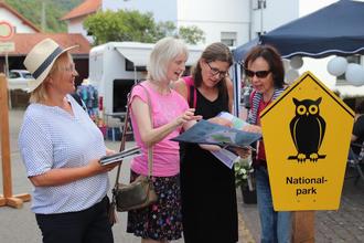 Nationalpark-Infostand Ausflüge planen: Am Infostand des Nationalparks Kellerwald-Edersee gibt es während des Heideblütenfestes in der Dorfmitte Altenlotheims umfangreiche Informationen über das Schutzgebiet, die zahlreichen Fahrrad- und Wanderrouten – samt Kartenmaterial zur Orientierung im Reich der urigen Buchen und Eichen. Bildautor: Nationalpark Kellerwald-Edersee