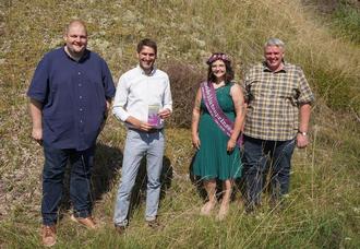 Haben den neuen Heidepfad zusammen eröffnet (v.l.n.r.): Manuel Steiner (Bürgermeister Nationalparkstadt Frankenau), Manuel Schweiger (Nationalparkleiter), Heideblütenprinzessin Saija I. und Heiko Backhaus (Ortsvorsteher Altenlotheim)