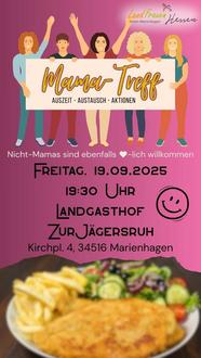 - Am Freitag, den 19.09. laden wir um 19:30 Uhr zum 2. Mama-Treff in die Jägersruh ein.