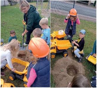 Nun steht er da, unser Kita – Baum, und wir hoffen, dass er kräftig wächst und uns viele Jahre begleiten wird.