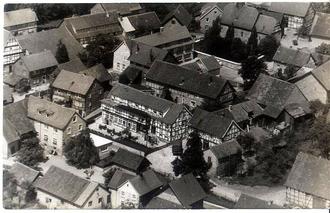 Ganz in der Nähe, weniger als hundert Meter entfernt, existiert noch heute das einstige Landschulheim (Fam. Nick Albrecht) in der Mitte unseres Dorfes Marienhagen. Über Jahrzehnte hinweg reisten überwiegend Schulklassen mehrerer Duisburger Schule mit dem Zug oder in einem Omnibus ins Ederbergland, um hier tolle und unbeschwerte Tage während der Klassenfahrten und die Ferienzeit zu genießen. Mehrere Gebäude gibt es heute nicht mehr, so z. B. das sehr bekannte und meistens belegte „Hotel Wettlaufer“ (bis auf den kleineren nördlichen Teil/ehemals „Diskothek Gondel“ im Mittelweg), das Fachwerk Fritz und Änne Knoche (später entstand hier das Haus von Otto und Lina Lohof, heute Fam. Angela Knoche, Fam. Katharina Knoche…), das äußerst nützliche Gefrierhaus, ein Teil der Schreinerei/des Hofes Fritz Figge und Maria, geb. Kubat, sowie die große Scheune vorne rechts im Schulweg (gegenüber der Feuerwehr). Gut zu entdecken sind die Pension Ochse (Arnold, heute Inge Kasparek), ein Teil der längst umgebauten Gebäude der Schreinerei Figge (heute Fa. Matthias Kubat), die „Jägersruh“ (Gaststätte/Hotel) oder auch die Häuser Cornelia Rehbein, Albert Knoche/Fam. Zunkel, Fam. Friedenberger, Fam. Heinemann, der Hof Bernd und Birgit Wiesemann neben der Ev. Kirche, der frühere Hof Werner/Elfi Bauch sowie weitere dörfliche Anwesen.