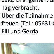 Über die Teilnahme von weiteren Senioren bei den kommenden Veranstaltungen würden wir uns freuen (Tel.: 05631 4982).