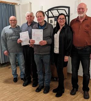 Im Bild von links: 1. Vorsitzender des Vöhler Sängerbundes Holger Dietzel, 1. Vorsitzender des gemischten Chores im MGV Heinrich Klein, 1. Kassierer Wilfried Figge, Chorleiterin Helen Zaloga und Schriftführer Günter Lippeke