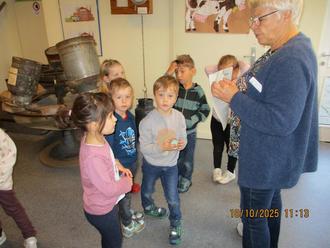 In Usseln angekommen war noch genügend Zeit für einen Ausflug auf die beiden Spielplätze. Dort frühstückten wir erst einmal. Nachdem sich alle gestärkt und ausgetobt hatten, ging es zum „Milchmu(h)seum. An der Tür wurden wir sehr herzlich empfangen. Frau Wilke, eine Mitarbeiterin des Museums, erklärte kindgerecht, wie früher die Kühe gemolken wurden. Auf Fotos sah man, dass die Milch in Kannen, mit der Pferdekutsche, zur Molkerei transportiert wurden. Auch die Geräte, womit die Milch verarbeitet wurde, sahen ganz merkwürdig aus und hatten eigenartige Namen. An einem Kuhmodell durften alle probieren, wie man früher melken musste. Das war ganz schön schwierig und anstrengend. Dann brachte uns Frau Wilke 3 Gläser mit Sahne. Diese mussten wir so lange schütteln, bis ein Butterhaufen entstand. Die übrig gebliebene Flüssigkeit im Glas war nun Buttermilch. Voll Vorfreude gingen wir ins Café. Dort wartete schon leckeres Brot, Buttermilch und Weidemilch auf uns. Jetzt konnten wir unsere selbst hergestellte Butter sowie Buttermilch verkosten. Es schmeckte allen wunderbar, nichts blieb übrig.