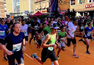Die Atmosphäre beim 17. Lübeck-Marathon war ohnehin stets prächtig… Als die 161 Staffeln dann jedoch auf die Strecke geschickt wurden, erreichte die Lautstärke neue Dezibel-Werte, wozu freilich auch die immer passende DJ-Musik im Wechselzonenbereich, die Moderationen sowie Samba-Musiker entlang der professionellen „Boxengasse“ oder an der Strecke beitrugen. Anna Specht, Lehrerin der Burgwaldschule, hatten Hans-Frd. Kubat (BWS, Laufcup) und Lothar Ritter als „arg fixierte“ Läuferin an die besondere „Start-Position“ gesetzt. Anna übergab nach famosem Lauf an Marco Specht. Das anvisierte Ziel, in der oberen Hälfte aller Staffelteams, darunter auch aus Skandinavier und 15 weiteren Nationen, zu landen, nahm immer mehr Konturen an. Als dann schließlich die langjährige Cup-Aktive Heike Weiß als neunte Staffelholzträgerin an Maritta Ritter übergab, lag die Mannschaft noch auf Platz 41. Nach wenig mehr als 21 Minuten hatte Maritta beim Abbiegen von der Königsstraße „nur noch“ den Anstieg am Herder-Center vorbei zu bewältigen - doch dort warteten aufgeregt alle Mitglieder der Gruppe „Burgwaldschule/Laufcup WA-FKB), um sie unter tosendem Jubel ins Ziel zu begleiten, wo die ein oder andere Freudenträne fließen durfte… Zur Marathon-Staffel gehörten Anna Specht, Alexandra Schwerin, Maritta Ritter, Heike Weiß, Marco Specht, Werner John, Klaus Kirschner und Thomas Knipp. Mit Platz 31 nach 3:21,05 Stunden waren sie alle sowie die mitgereisten Fans aus der Heimat „richtig happy“, so Alexandra. Kurzfristig vor dem Start war Studentin Luzie Arnold wegen einer Verletzung leider ausgefallen…