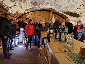 Einen unvergesslichen Abend erlebten wir letzten Freitag mit drei Nachtwächtern in Korbach. Zunächst ließen wir uns das Abendessen im Pranger schmecken und machten uns dann bei eisigen Wetter und Dunkelheit auf zur mittelalterlichen Altstadtführung mit drei Pulwerköppen. Einige Highlights hielten diese dabei für uns bereit, wie zum Beispiel die Besteigung des Thylenturms, die nächtliche Kontrolle einer Kneipe und der Ausklang im Gewölbekeller des Gildehauses. Selbst einen unserer Männer verloren wir an die Pulwerköppe, nachdem dieser den kurzen Eid gesprochen hatte. An dieser Stelle nochmals vielen Dank an die drei Nachtwächter Fuchs, Wandrey und Stracke.