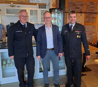 von links Wehrführer Stefan Beckmann, Bürgermeister Karsten Kalhöfer und den Leiter der Alters- und Ehrenabteilung Norbert Scherf
