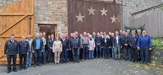 die Mitglieder der Alters- und Ehrenabteilung mit ihren Leitern Links Norbert Scherf und Rechts Peter Schmidt, sowie die Gäste. 4. von rechts Bürgermeister Karsten Kalhöfer