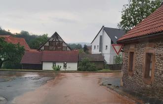 Starkregen vom 22.06.2023, Vöhl, Ecke „Zum Köppel/Arolser Str.“