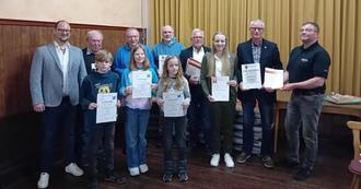 Auf dem Bild v. l. n. r. Florian Noll, Georg Nagel, Gerhard Schüssler, Ralf Schäfer Thomas Rabe, Catharina Drews, Artur Noll, Florian Wald. Vorne Mats Lippecke, Pauline Denhof, Piet Lippecke