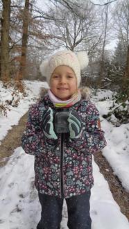 Nach dem Frühstück in einer Lichtung spielten wir das Spiel "Mäuse und Fuchs". Danach versteckten wir die Becher mit warmen Wasser zwischen den Büschen im Schnee. Später suchten wir die Becher und haben die Wassertemperatur mit dem großen Thermometer gemessen. Zum Schluss spielten wir das Spiel "Tiere im Winter!"