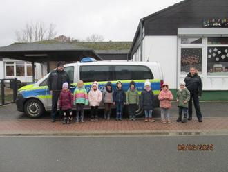 Große Vorfreude herrschte bei den Vorschulkindern, als sich die Verkehrspolizei ankündigte. Frau Dehnert und Herr Schramme erwarteten die Kinder im Bewegungsraum. Dort wurde zuerst über die Aufgaben der Verkehrspolizei gesprochen. Dann wurde sehr anschaulich gezeigt, wie wichtig es ist, beim Fahrradfahren einen Helm zu tragen. Maskottchen „Leon“ (ein Plüschlöwe) zeigte den Kindern, wie bedeutsam es ist, mit Kindersitz und richtig angeschnallt zu sein. Dann wurde eine Straße mit Zebrastreifen und Fußgängerampel aufgebaut. Dort wurde das richtige Überqueren der Straße geübt. Dabei lernten die Kinder den ganz wichtigen Satz: „An der Bordsteinkante-halt!“ Im Anschluss ging es „ab auf die Straße“. Das Gelernte musste nun im echten Straßenverkehr umgesetzt werden. Zur Belohnung durften sich die Kinder das Polizeiauto anschauen und Polizist spielen. Dabei wurden auch Blaulicht und Martinshorn eingeschaltet. Im Anschluss bekamen alle ihren Fußgängerführerschein überreicht.