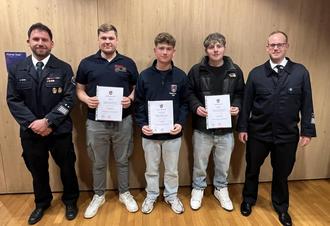 Wehrführer Sebastian Bönisch, Philipp Müller und neuer Jugendwart Elias Räbiger