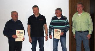 Die ehem. Vorsitzenden Sascha Kuhnhenne und Martin Koppe ehrten Karl-Friedrich Koppe und Lothar Küthe für 60 und 40 Jahre Mitgliedschaft