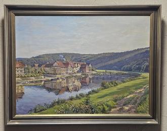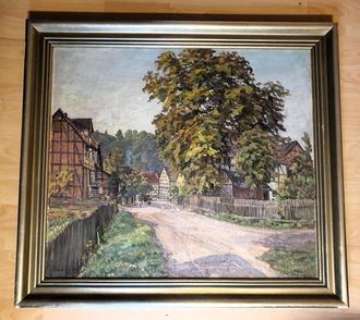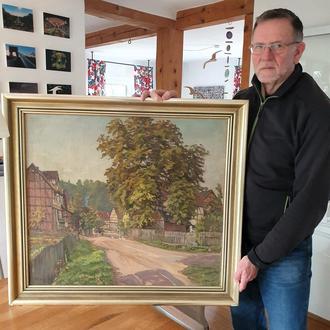 Mitte Februar hat unser ehrenamtlich Mitwirkender des Guxhagener Digitalarchiv, Günter Döring, in Kassel in einem Antiquariat nach einem Buch gesucht. Dabei kam Günter Döring mit dem Inhaber ins Gespräch und fragte diesen, ob er auch Bilder hätte. Daraufhin zeigte der Inhaber das wunderschöne Dorf- und Landschaftsbild von Paul Scholz. Leider war das Bild nicht beschriftet und man konnten nicht genau feststellen, welchen Ort er genau gemalt hatte. Günter Döring hat das Bild sodann fotografiert und es seinen Mitstreitern des Digitalarchivs gezeigt. Der ortskundige Wolfgang Ebert erkannte sofort, dass das Bild Büchenwerra zeigt. Nach Rücksprache mit der Bürgermeisterin hat Günter Döring das Bild im Wert von 230,00 Euro im Namen der Gemeinde Guxhagen im Antiquariat gekauft. Es darf sich künftig zu einem weiteren Bild von Paul Scholz in der Gemeindeverwaltung einreihen, welches ebenfalls Büchenwerra zeigt. Ein herzliches Dankeschön geht an Günter Döring und Wolfgang Ebert vom Digitalarchiv. Dies zeigt uns erneut, wie wertvolle und wichtige die Arbeit von ehrenamtlich engagierten Menschen in unserer Gemeinde ist.