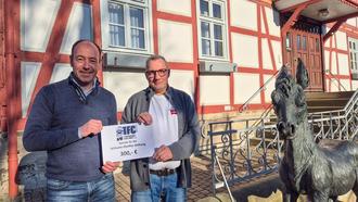 Im Juni 2024 feierte Körle sein 950-jähriges Ortsjubiläum mit einem großen Festwochenende in der Ortsmitte. Auf der Festmeile fanden die Besucher ein umfangreiches Unterhaltungsprogramm, Infostände, Angebote für Kinder und reichlich Essen und Getränke. Dass es auch eine Auswahl an guten Weinen gab, ist der Initiative des TFC Tischfußballclub Körle 1974 e.V. und dem mittlerweile verstorbenen TFC-Mitglied Achim Erbeck zu verdanken. Aus dem Erlös dieses Weinstandes überreichte nun der 1. Vorsitzende Ralf Hofmeister eine Spende für die Wilhelm-Pfeiffer-Stiftung an Bürgermeister Mario Gerhold. Die Stiftung wurde im Jahr 1994 aus dem Nachlass des Heimatdichter Wilhelm Pfeiffer (1904-1993) gegründet und unterstützt aus den Kapitalerlösen musikalische, kulturelle und sportliche Zwecke in Körle sowie den Erhalt der Mundart. So fließt jährlich ein Betrag von rd. 3.000,- € an die örtlichen Vereine. Zustiftungen und Spenden sind möglich. Für diese Spende sagt die Gemeinde Körle herzlichen Dank an den TFC.