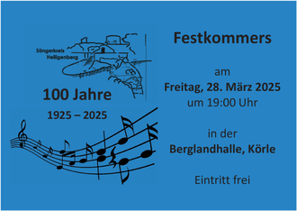 Der Sängerkreis Heiligenberg ist eine Vereinigung von rd. 20 Chören aus dem Altkeis Melsungen sowie dem Gesangverein Grifte. In diesem Jahr kann die Organisation ihr 100-jähriges Bestehen feiern. Zu einem Festkommers sind alle Sängerinnen und Sänger sowie alle Menschen, die (noch) nicht im Chorgesang aktiv sind, herzlich willkommen. Die Veranstaltung findet am Freitag 28. März um 19.00 Uhr in der Berglandhalle statt.