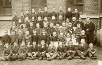 Dieses Foto des Jahrgangs 1893 entstand vor der Schule in der Guxhagener Straße, heute Apotheke alte Schule.
