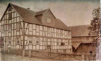Das heutige Rathaus wurde als Bauernhaus der Familie Wenzel in 1844 errichtet. Die Inschrift im Rahmholz des Fachwerks links oberhalb der Eingangstür lautet: JUSTUS WENZEL U.D E.F ANNA ELISABETH GB BARTELMEI. HABEN GOTT VERTRAUT U.D BAU GEBAUT AM 1 MEI 1844 Z.M. HOERIG