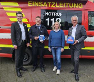 Die Freiwillige Feuerwehr der Gemeinde Guxhagen freut sich über die Spende eines Automatischen Defibrillator (AED) durch die Kreissparkasse Schwalm-Eder.