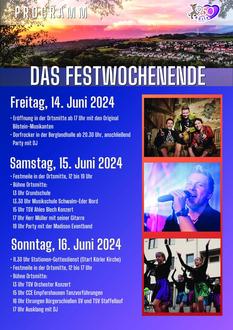 Am Festsonntag geht’s nach einem Stationen-Gottesdienst der Evngelischen Kirchengemeinde auf der Bühne weiter. Dann spielt das TSV Orchester, der CCE zeigt flotte Tänze und der Schützenverein und der TSV ehrt die Sieger vom Bürgerschießen beziehungsweise Staffellauf.