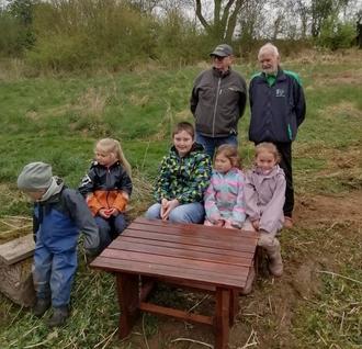 Ein kleines Ostergeschenk gab es für den Waldkindergarten am Gründonnerstag: Paul Dieling lieferte mit seinen Opas Gerd Rohleder und Günter Dieling ein Holztischchen und zwei Sitzbänke zum Platz der Waldwichtel. Dort können die rd. 25 Kinder, die regelmäßig in den Waldkindergarten gehen, sich nach ihren anstrengenden Erkundungstouren ausruhen und stärken. Die Waldwichtel sagen herzlichen Dank für dieses nette Geschenk an die Familien Dieling und Rohleder.