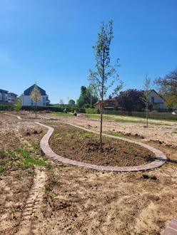 Vergangenen Monat wurden die Pflanzen geliefert und konnten in den letzten Tagen gesetzt werden. Darunter auch größere Bäume, die bereits jetzt erahnen lassen, wie die Gestaltung angedacht ist. Grundgedanke ist ein naturnahes Bild der Fläche zu gestalten, welches an die Bestattungsform im Wald denken lässt. Die Bodendecker benötigen noch etwas Entwicklungszeit und werden dann zu dem gewünschten Gesamtbild ihren Beitrag leisten.