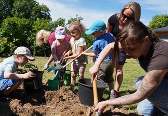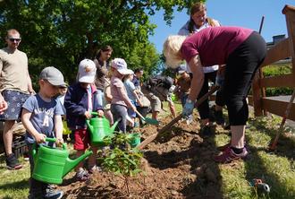 Himbeeren, Brombeeren, Salat, Erdbeeren und vieles mehr können die Kindergartenkinder der Salamander-Gruppe bald ernten. Die NABU-Gruppe Körle hat die Pflanzen beschafft und gespendet, die die Kinder gemeinsam mit Eltern, Erziehern und NABU-Mitgliedern auf dem Gelände am Finkenweg eingepflanzt haben. Zuvor hatten Mitarbeiter des Bauhofes die Fläche vorbereitet, damit die Kinder die jungen Pflänzchen nur noch in die Pflanzlöcher einbringen mussten. Und die hatten sichtlich Spaß bei der Arbeit. "Wenn ich sehe, mit welchem Eifer die Kinder dabei sind, freue ich mich auch total", sagte die neue Erste Vorsitzende der NABU-Gruppe Christina Clobes. Im Herbst soll eine ähnliche Pflanzaktion im Waldkindergarten stattfinden.