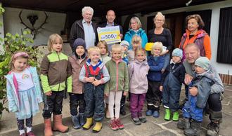 Den Körler Waldkindergarten gibt es schon mehr als 20 Jahre. Im Sommer 2003 richtete die Gemeinde Körle ein Gelände im Tal der Trockenen Mülmisch her, das seitdem Anlaufpunkt für bis zu 25 Kinder im Alter von drei bis sechs Jahren ist. Im Laufe der Jahre haben mehr als 200 Kinder eine tolle Zeit auf dem Wald-Wiesen-Bachgelände unweit des Wilhelm-Pfeiffer-Brunnens genossen. Auch in Zukunft soll das naturnahe Betreuungsangebot für Kinder und Eltern bestehen bleiben. Eine finanzielle Unterstützung leistete dafür nun Volker Emmeluth, langjähriger Jagdpächter des Reviers Körle/Empfershausen und Seniorchef der Bauunternehmung Emmeluth: Über eine Spende von 500,- € konnten sich die Kinder und Erzieher Anfang Mai freuen, als die Waldkinder bei ihrer Wanderung eine Rast auf der Jagdhütte einlegten. Hier gab es nicht nur einen Scheck, auch einige Geweihe waren zu bestaunen und es gab noch eine kleine Stärkung, die Ilka Emmeluth für die Kinder vorbereitet hatte. Zum guten Schluss überreichte Frau Emmeluth noch zehn Kinder-Bauhelme, die sofort von den kleinen Gästen anprobiert wurden. Mit einer Holztafel im Gepäck bedankte sich der Waldkindergarten bei Emmeluths für die gelungene Aktion. Die Gemeinde Körle schließt sich diesem Dank gern an.