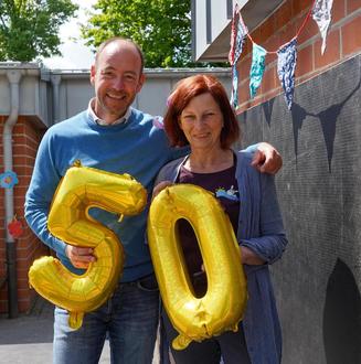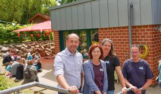 Michael Urban hob in seinem Grußwort insbesondere die Menschen hervor, die den Kindergarten jeden Tag zu etwas Außergewöhnlichem machten: „Was diesen Kindergarten so besonders macht, ist nicht nur das für seine damalige Zeit modern gestaltete Gebäude oder der schöne Garten. Es ist das Herz, dass in dieser Kita schlägt. Die Menschen, die hier mit vollem Einsatz arbeiten. Die Kinder, die mit offenen Augen und voller Neugier hier jeden Tag etwas Neues entdecken. Und die Eltern, Familien, Freunde und Helfer, die diesen Ort mittragen, Mitgestalten und mit Leben füllen.“ Viele Unterstützer hätten auch diesen runden Geburtstag Mitgestaltet – so bedankte sich Michael Urban beispielsweise beim Kinderverein, dessen Mitglieder mit zahlreichen Spielstationen auf dem Kita-Gelände zugange waren sowie den Mitgliedern der NABU Ortsgruppe, die mit den Kindern beispielsweise Blumentöpfe bemalten. Für Essen und Getränke war beim Fest ebenfalls bestens gesorgt: Dank ungezählter Kuchenspenden entstand ein großes Buffet, Deftiges vom Grill gab’s vom Caterer Mario Zillich und Pinot sorgte mit seinem Eismobil am Nachmittag für eine kleine Erfrischung. Michael Urban erinnerte auch an Menschen, die sich in den vergangenen 50 Jahren in besonderem Maße für den Kindergarten engagiert haben – beispielsweise an Dieter Zimmermann, der jahrelang ehrenamtlich Kindergartenkinder zum Waldgelände fuhr.