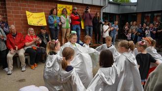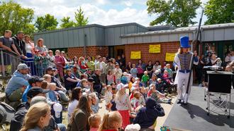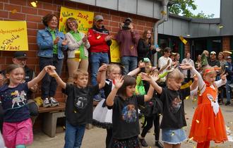 Einen neuen Kindergarten konnte Zauberer Fabian zwar trotz seines überdimensionierten Zauberstabs leider nicht herbeizaubern, aber er sorgte beim Jubiläumsfest auch mit seinen kleinen magischen Tricks für jede Menge Spaß bei den Gästen. Für einen besonderen Höhepunkt sorgten übrigens die Kindergartenkinder selbst, als sie ihr eigenes Lied zum Geburtstag der Kita – geschrieben von Heike Hesse – voller Begeisterung vorsangen. Musiker Niklas Vaupel begleitete die jungen Sängerinnen und Sänger dabei auf seiner Gitarre.