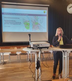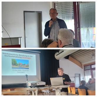 Neben den kommunalen Projekten wurden am Informationsabend den Grundstücks- und Gebäudeeigentümern, die Möglichkeit gegeben, sich über Förderungen zu informierten, die Privateigentümern im Rahmen der Dorfentwicklung zur Verfügung stehen. Die sogenannte städtebauliche Beratung erfolgt in Kooperation mit der Bürogemeinschaft Architekten Ruhl + Geissler. Herr Ruhl informierte die Anwesenden in einem umfassenden Vortrag, welche privaten Maßnahmen grundsätzlich förderwürdig sind. Voraussetzung hierfür ist, dass das Gebäude bzw. Grundstück in den Bereichen liegt, die auf Grundlage städtebaulicher Bestandsanalysen im Kommunalen Entwicklungskonzept als Fördergebiete abgegrenzt wurden. Grundsätzlich förderfähig sind auch Einzel-Kulturdenkmäler, die außerhalb der Fördergebiete liegen.