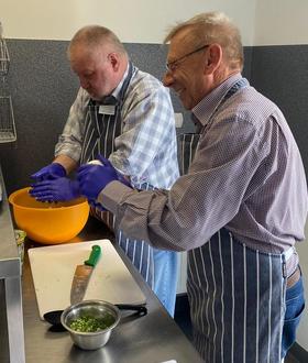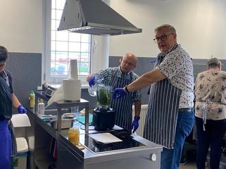 An der landwirtschaftlichen Schule bereiteten die Teilnehmer der Reise bei einem Workshop ihr Mittagessen zu.