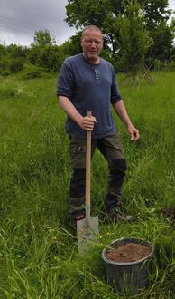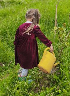 Elsa heißt eine Ahornbäumchen, das jetzt von Malika aus dem Waldkindergarten gepflegt wird. Bettina Wilhelms hatte den Baum aus ihrem Garten ausgemacht und dem Waldkindergarten gespendet. Das Bäumchen wurde jetzt mithilfe von Thomas Peuschel eingepflanzt. Malika hat die Patenschaft für den Baum übernomen.