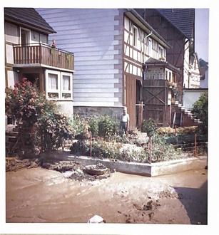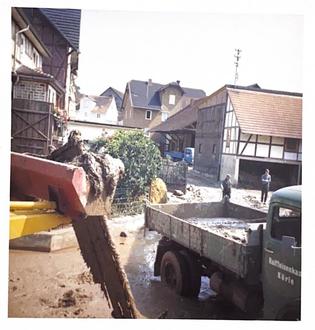 Am Freitag, dem 18.07. wurden durch Ausschellen alle Männer zum freiwilligen Arbeitseinsatz aufgerufen. Die Herren der Gemeindevertretung gingen mit gutem Beispiel voran. An dieser Stelle soll der selbstlose Einsatz der freiwilligen Arbeitskräfte, die beim Entschlammen der Keller, bei der Beseitigung der Schutt- und Geröllmassen auf den Höfen, Wegen und Straßen, bei der Entleerung des vollkommen verstopften Kanalrohre, bei der Abfahrt des Schwemmgutes, so tatkräftig geholfen haben, anerkennend gewürdigt werden. Auch die Trinkwasserversorgung war gefährdet, da im Quellgebiet der Bachwiese durch Wassereinbrüche die Hauptleitung an zwei Stellen unterbrochen war.