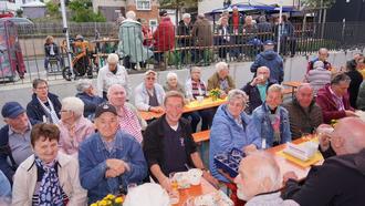 Während auf der Festmeile am Freitag noch der Aufbau der zahlreichen Stände der Vereine und Gewerbetreibenden lief, startete die Geburtstagsfeier auf der Dorfplatz-Bühne mit einem Konzert der Bilstein-Musikanten. Hunderte Seniorinnen und Senioren waren der Einladung der Gemeinde gefolgt und stimmten sich mit Musik, Getränken und Bratwurst aufs Festwochenende ein.