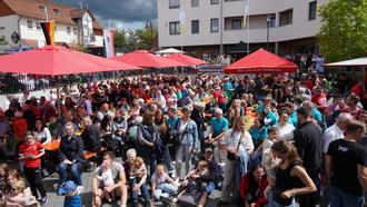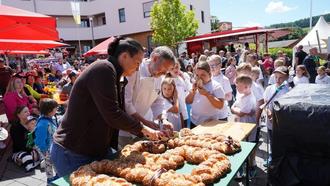 Das Wetter spielte den ganzen Tag über mit. „Das haben wir heute Morgen aus Floh mitgebracht”, witzelte Ralf Holland-Nell. Die Partnergemeinde war nicht nur mit einem Info-Stand über ihre Region, sondern auch mit der heiß begehrten Thüringer Bratwurst vor Ort.