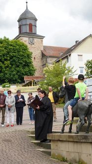 Der Festsonntag startete mit einem sehr gut besuchtem Stationen-Gottesdienst an der Körler Kirche. Musiker des TSV Orchesters begleiteten die Andacht von Pfarrerin Daniela Hoff. Für die Gottesdienst-Besucher ging es einmal durchs Dorf bis zur Ortsmitte, wo die Andacht auf der Bühne ihr Ende fand. Auch am Sonntag kamen noch einmal Hunderte Besucher ins Dorf. Auf der Bühne sorgte das TSV Orchester mittags für stimmungsvolle Musik, am Nachmittag der CCE Empfershausen mit Tanzvorführungen und einer Geschichte rund um Esel und Hase für einen proppenvollen Dorfplatz bei bestem Wetter. Der Schützenverein nutzte die Bühne, um die Sieger des Bürgerschießens zu ehren.