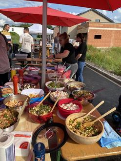 Neben Bratwurst und Grillkäse gab es ein Salatbuffet, das die Bewohner lieferten